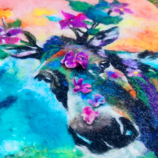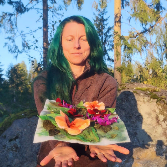Wool Painting ”Enchantment of Flowers”, from the Whimsical Wildlife in Bloom collection