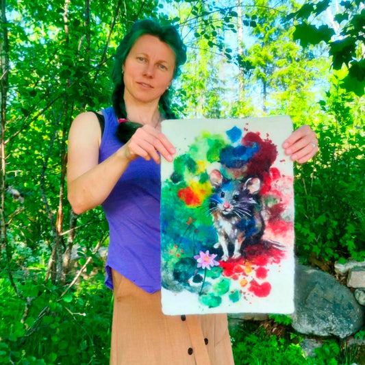 Wool Painting ”The Colorful Adventure of the Mouse”, from the Whimsical Wildlife in Bloom collection